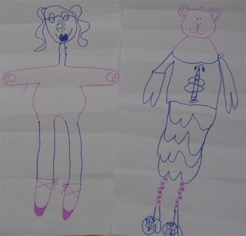 Anyway with thoughts of childhood in my head, I thought I’d share with you my favourite childhood game (courtesy of my Dad) which has now become one of Amy’s favourites. I’ve been really enjoying reading Rebecca’s senses series where she describes simple fun games to play with your children that encourage them to think about the world around them. This too is a simple game (all the best games are in my opinion). All you need is 1 sheet of paper and a pen per person (2 players or more). Fold the paper into quarters across the width and flatten out again. Then draw a head (human, animal or fantasy) and fold the paper over, hiding your drawing but leaving the bottom of the neck showing. Then everyone passes their piece of paper on to the next person. In the 2nd quarter join a body, arms and top of legs onto the neck and fold the paper again so only the tops of legs are showing. Pass the drawing on again. Draw legs in the 3rd quarter (but not feet) wiggly, hairy, fat, thin etc then fold the paper leaving the ankles showing. After passing the drawing on again draw feet in the last quarter and fold up completely. Pass the drawing on one last time then everyone opens up to see what fantastical creatures have been drawn. Little kids love playing as part of a team with a grown-up. It’s great fun seeing what funny creatures appear and never fails to make Amy laugh.