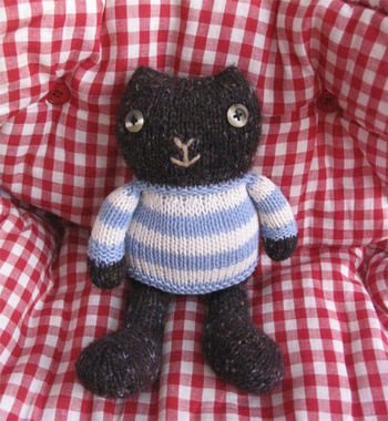 hello, the monkeys are great but I’m sorry, I’m just in love with Charlie Cat!!! I did a search on google for cat, woolly, hat and he popped up, although not actually in a woolly hat but no less georgeous for the lack of it!! I have a cat who I think looks just like him, I just have one question, how can I get my own Charlie Cat, is there a pattern I could follow to make one or do you sell them? pleeeeaaaaasse say you do :o)