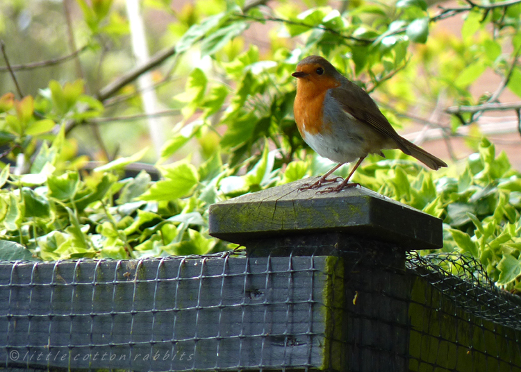 Your robin photos are stunning and I love the rabbit. I hope your feeling less down very soon. I think spending some time in nature will help. You have such an amazing eye for seeing a photographing beauty. Stay away from the TV until the royal wedding. The wedding seems like it will be such a happy occasion – there’s nothing like a happy bride and groom on a glorious sunny day to lift one’s spirits.
