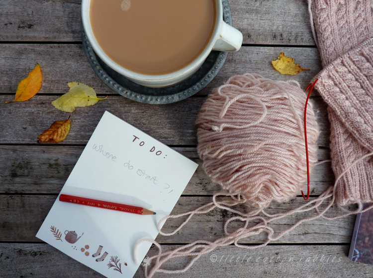 Perhaps, after a few days of faffing around and allowing myself to get reacquainted with being able to choose how to spend my own time, a plan for tackling my chores will come into focus. There are bunnies waiting to be finished too, all dressed up for spring, as I had planned to list them in time for Easter earlier this year. That’s rather indicative of how this year has been; time ticking and trickling through my fingers; plans made and not realised – I need to give myself a stiff talking to – but not until I’ve knitted a few more rows and had another cup of tea.