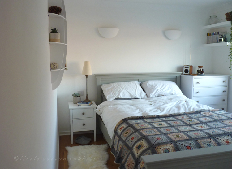 Part of our preparations this year have been putting the finishing touches to Amy’s room. When she moved out in September to go off to Uni it was a very scruffy, tired-lilac coloured, out-grown bedroom with a well worn carpet and walls that bore the pen, make-up and sticky finger marks from the growing-up years. H has worked so hard over the last 2 months, painting, laying a new floor, putting up new lights, moving shelves and generally transforming it into a bright, peaceful and relaxing space fit for a uni student to unwind in between busy term times. Hopefully she’ll love it as much as I do and I can’t wait for her to see it next week when I go and collect her.