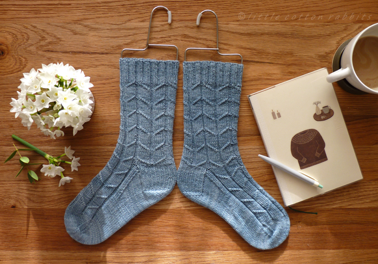 Anyway, two pairs of socks have been finished, the top ones are Fair Isle Flower Sock by Candice DeWitt knitted mostly in Eden Cottage Hayton ‘tarn’ and below are a pair knitted from Helen Stewart’s Fragment sock pattern in Madeline Tosh twist light yarn ‘well water’ (I’ve added both as projects to ravelry if you wanted links to yarns etc.)