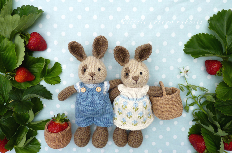 The summer break from school is 7 weeks long, so I might not be here very often during that time, though I do hope to pop in now and again and I’m also hoping to hang out on the Facebook and Ravelry groups too, so maybe see you there. I’ll will be back soon though with news of the latest pattern which I finished off earlier today and is currently in testing. Can’t wait to share it with everyone – it’s for accessories and there’s a sneak peek in the picture above at the basket that’s included. I’m so pleased with how it’s turned out and the bunny twins Charlie & Coco have had fun testing out how many strawberries they can fit into their baskets (these bunnies and their clothes are knitted from my small rabbit pattern and the new small clothing patterns for the dress, sweaters and dungarees).