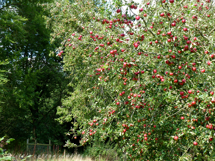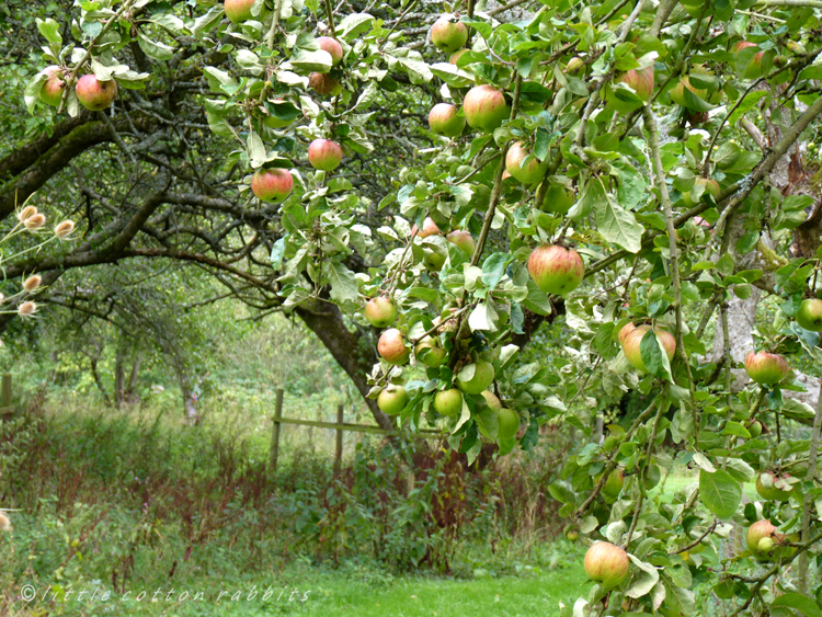 A couple of weeks ago I went out to the orchard. It’s one of my favourite local places and is at it’s best in Spring, when the trees are bedecked with blossom, and in Autumn when fruit decorates every branch, shining out from between the leaves like glowing baubles. I’m always amazed at the wide variety of the humble apple, there are many shades of green from palest milky jade, to bright sunny lime and a range of reds from russet to a deep burgundy. Each one is a thing of beauty and sitting in the middle of this quiet place is a great delight to me and a balm for soothing away any worries to a background hum. I climbed the wooded hill at the back of the orchard where there’s a large badger sett, though they were all safely sleeping underfoot, and then headed back past the bee hives and geese to my car and drove home feeling peaceful and refreshed.