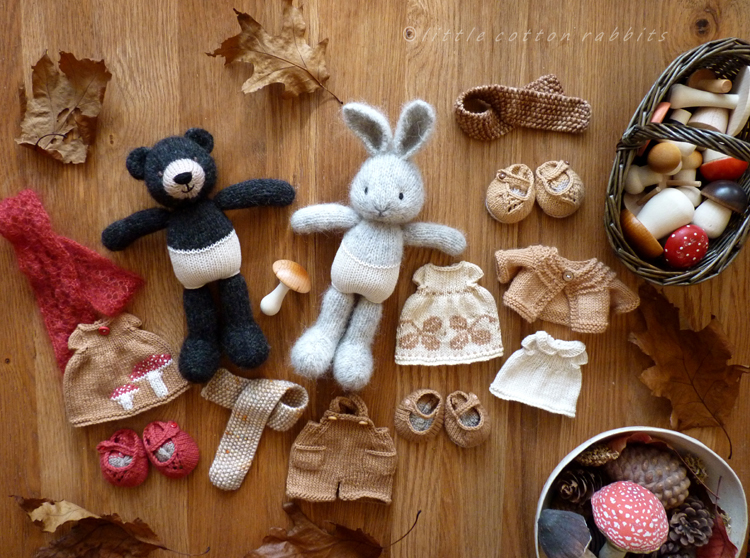Hi Julie – Your new Fall designs are lovely. Looking forward to seeing the animals dressed in them and trying my hand at knitting a “toadstool” dress. Also, your photos are beautiful as always. Thanks for sharing.