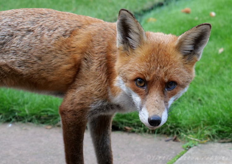I’ve been out to the woods a few times on my own, hunting for photogenic fungi. As yet I have found very little, but I have enjoyed the quiet peace under the canopy and visiting the friendly red poll cattle that graze the woodland and a sweet, scruffy pony that lives in the field at the edge of the wood. And I came home with pocketfuls of beautifully fat and glossy chestnuts, I’ll be sharing some with the friendly squirrel that visits our garden and roasting the rest later. Our other friendly visitor has been here frequently too, beautiful Kit the fox.