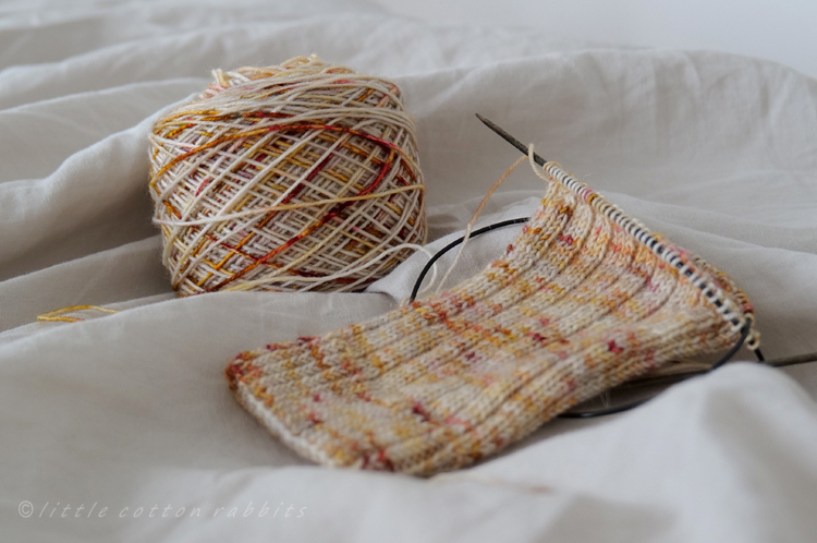 Here we are still settling in to term-time routines, it always takes a while for Toby to adjust and we have had a few wobbles, which have resulted in him being home a little more than expected or planned for. And the older I get the longer it seems to take me to settle in to concentrating properly. There’s been a lot of knitting of course. I made a little rabbit for my friend to auction off at a charity masked ball that she organised to raise funds for the wonderful, inclusive playscheme that our sons both attended when they were younger. There has also been some simple weekend and evening sock knitting, as a welcome contrast to working on the patterns, which is at times fiddly, frustrating and takes a well-rested morning brain to tackle properly. I’m planning more simple wristwarmers and socks with the lovely autumnal coloured yarns bought from The Knitting Shed (I might be just a wee bit obsessed with their yarn at the moment).