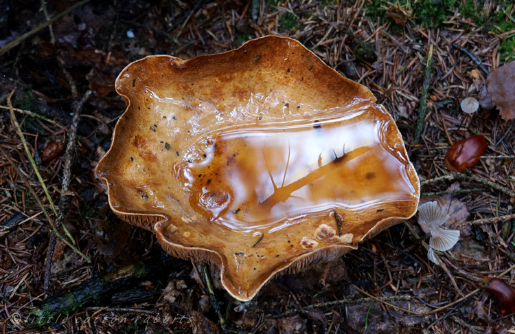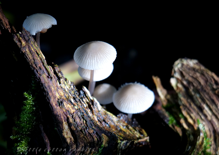 Alone you can walk quietly, listening to the forest sounds and concentrating on noticing small details: the curl of a leaf; the glint of a toadstool in the dark of a hollowed out stump; a leaf reflected in a small pool of silvery water cupped in the cap of a toadstool; the patterns in a decaying tree.
